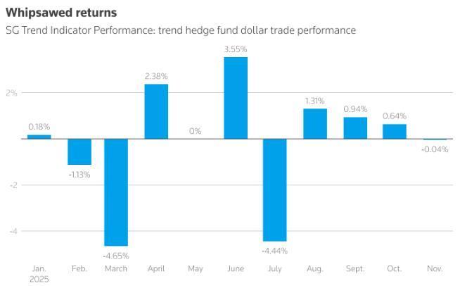 2025 年可谓是波折起伏的一年,发达市场货币的波动率在 4 月份飙升至两年来的高位;随后有所缓和,一个更加稳定的市场使得套利交易(即借入低收益货币以投资于高收益货币)更具吸引力。外汇市场的高波动性给对冲基金带来了盈利机会。例如,一位知情人士表示,管理着 10 亿美元资产的对冲基金EDL Capital今年增值了28%,年初和所谓的“解放日”期间的收益以及对美元的押注起到了推动作用。